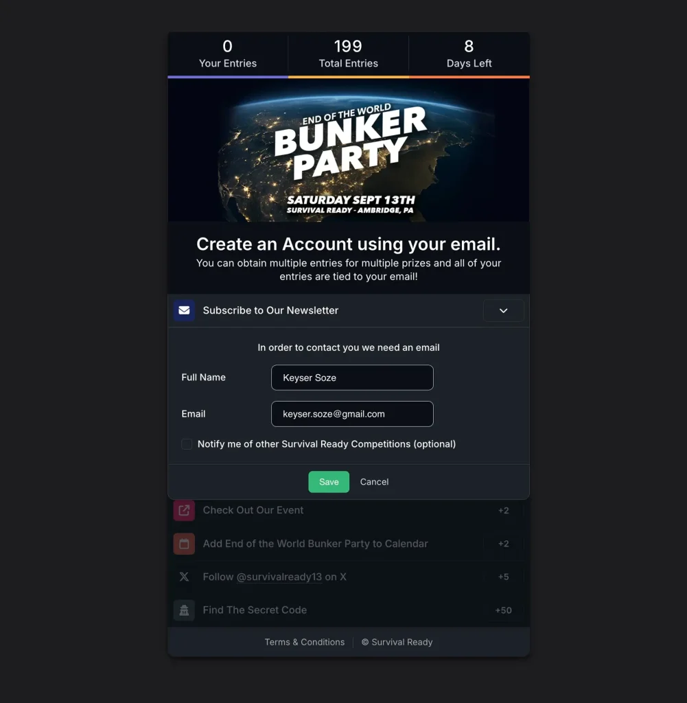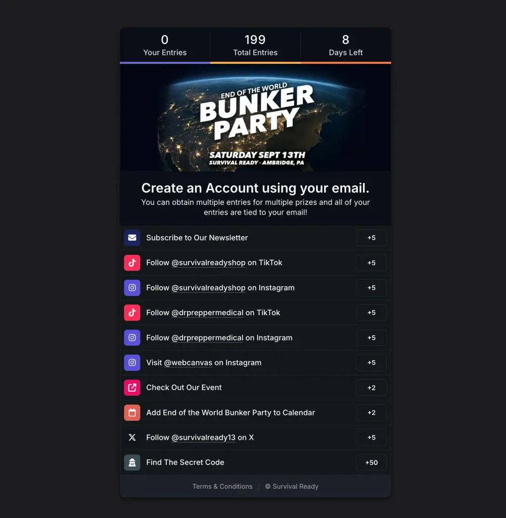 Take as many actions as you want to obtain entries into the contest!