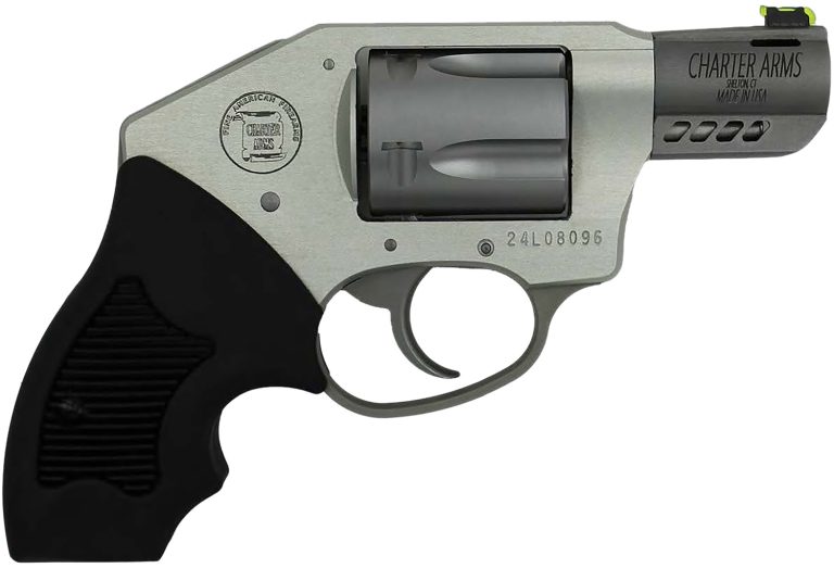 Charter Arms 53801 Off Duty Coyote 380 ACP 5rd 2″ Matte Stainless Ported Barrel & Cylinder, Anodized Aluminum Frame, Black Finger Grooved Rubber Grip, Concealed Hammer