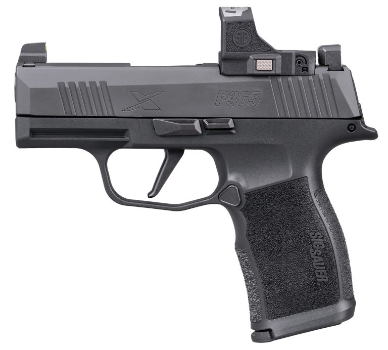 Sig Sauer 3659GXR3P P365 Micro-Compact 9mm Luger 10+1 3.10″ Black Barrel, Moss Green Stainless Steel Optic Ready/Serrated Slide, Black Alloy Frame w/Accessory Rail, Textured Grip, RMSc Footprint