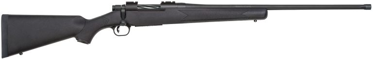 Mossberg 28243 Patriot Full Size 6.5 PRC 4+1 24″ Matte Blued Fluted Threaded Barrel, Drilled & Tapped Matte Blued Stainless Steel Receiver, Black Fixed Synthetic Stock