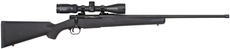 Mossberg 28247 Patriot w/Optic 350 Legend 4+1 22″ Matte Blued Fluted Threaded Barrel, Matte Blued Drilled & Tapped Receiver, Fixed Black Synthetic Stock, Vortex Crossfire II 3-9x40mm