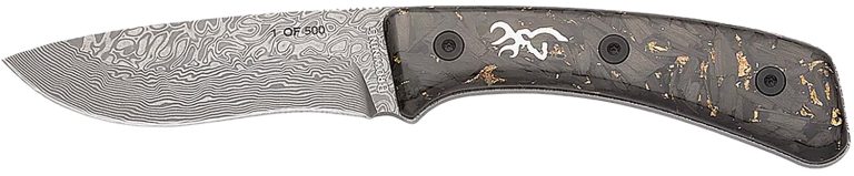 Browning 3220570B Rock 3.50″ Fixed Drop Point Plain Acid Etch Damascus Blade, Carbon Fiber Handle