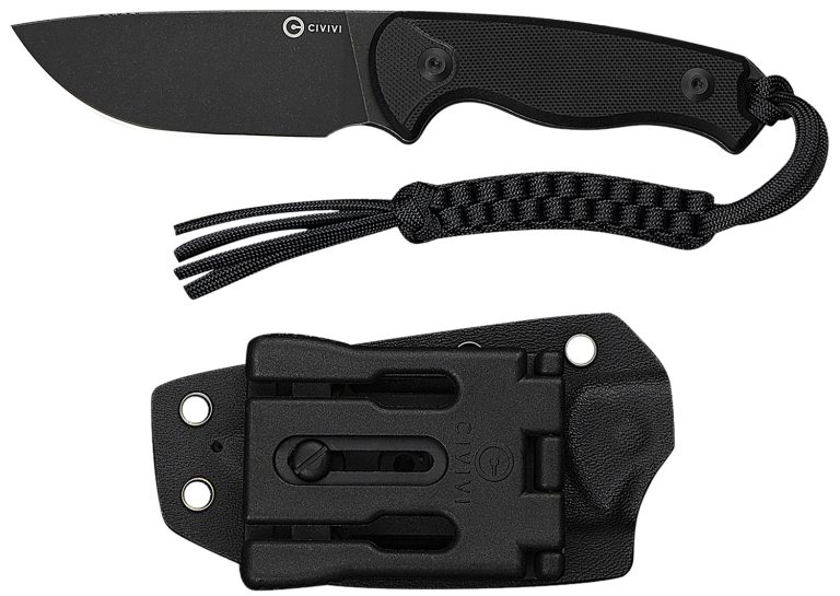 Civivi Knives C23041-1 Stormridge 3.92″ Fixed Straight Back Plain Black Stonewashed Nitro-V Steel Blade, Black Textured G10 Handle