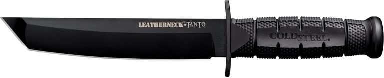 Cold Steel CS-39LSFCT Leatherneck 7″ Fixed Plain Tanto Black Matte Powder Coat German D2 Steel Blade/Black Deep Checkered w/double Quillon Guard/ Griv-Ex Handle
