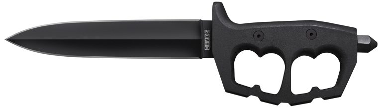 Cold Steel CS-80NTP Chaos Double Edge 7.50″ Fixed Plain Black SK-5 High Carbon Blade/Black w/ “D” Ring Guards Aluminum Handle