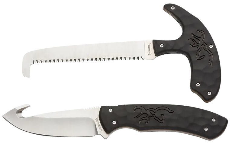 Browning 3220420 Primal Combo 3.75″/5.25″ Fixed Drop Point Gut Hook/Skinner, Saw 8Cr13MoV SS Blade, Black Polymer w/Rubber Overmold & Finger Grooves Handle, 2 Piece Set, Includes Sheath