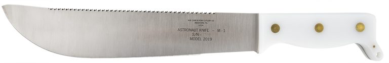 Case 12019 Astronaut M-1 Commemorative 11.75″ Fixed Machete Plain/Saw As-Ground High Carbon Steel Blade/Smooth White Synthetic Handle