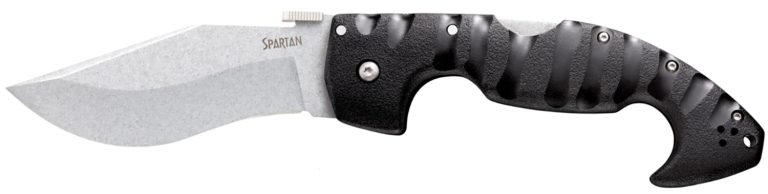 Cold Steel CS21ST Spartan 4.50″ Folding Plain Stone Washed Japanese AUS-10A SS Blade/Black Griv-Ex w/Steel Liners Handle Includes Pocket Clip
