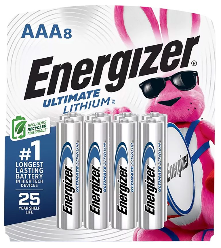 Energizer L92SBP8H3 AAA Ultimate Lithium Silver 1.5V Lithium, Qty (8) Single Pack