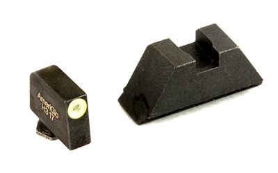 AmeriGlo suppressor height sets provide an elevated sight picture, able to co-witness with slide-mounted miniature red dot optics and suppressors. This flat black rear with tritium front sight set is designed for Glock MOS pistols using the Aimpoint ACRO and Holosun 509T optics For more information on how to choose the correct height set for your suppressor or optic, visit the AmeriGlo website, under the INFO tab.