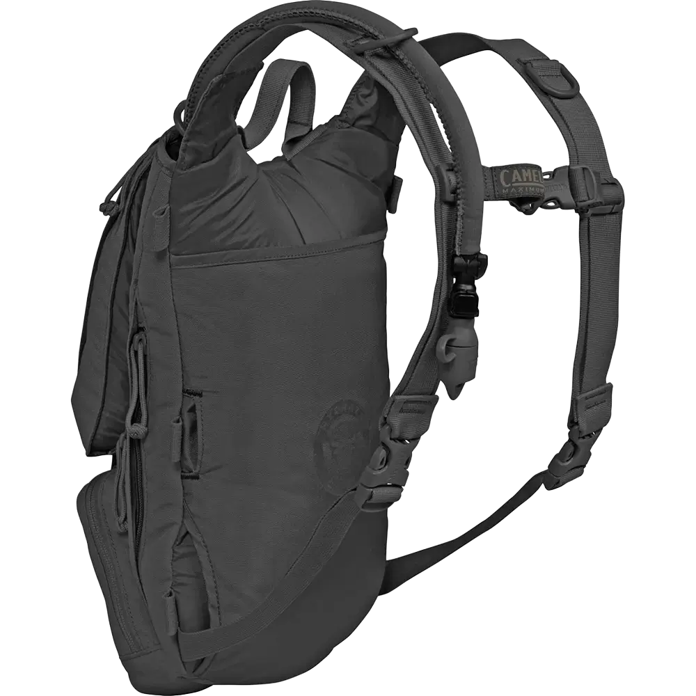 Perfect for shorter missions, the Camelbak Ambush optimizes the area on a user’s back with a wider platform, shorter torso length and reduced stack height. With external access to the 3L, 100oz Mil Spec Crux Reservoir that provides 25% more water per sip, the Ambush is our largest hydration pack that includes external fill.