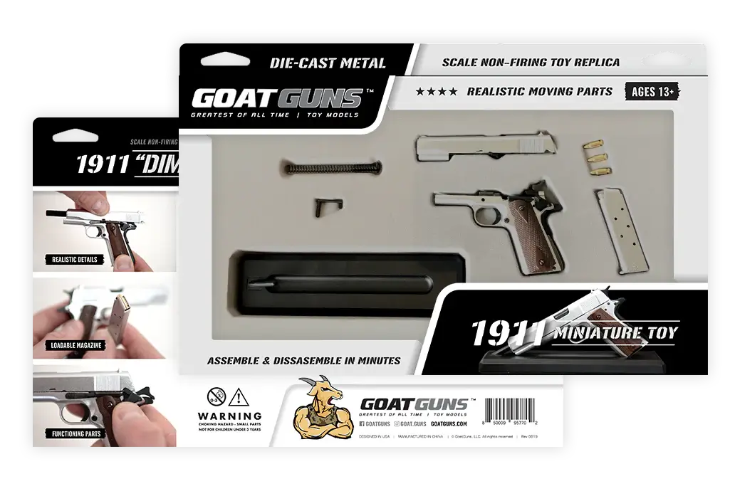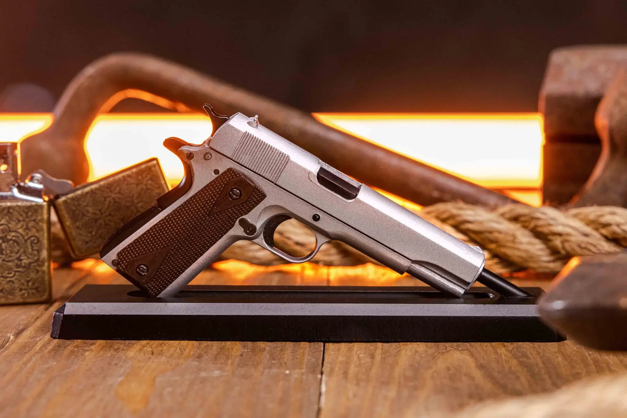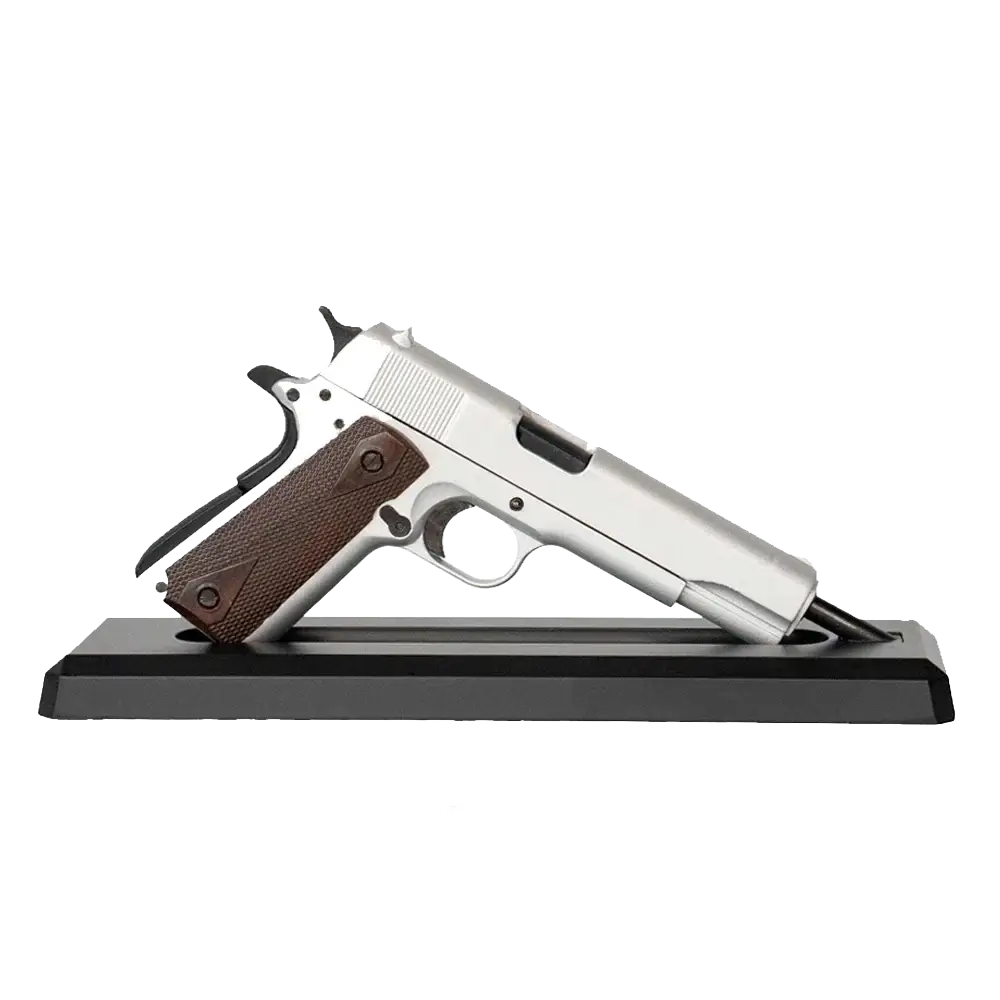 Authentic die cast metal parts on our 1:2.5 scale version of the 1911. Your thumb safety and slide actions all work.